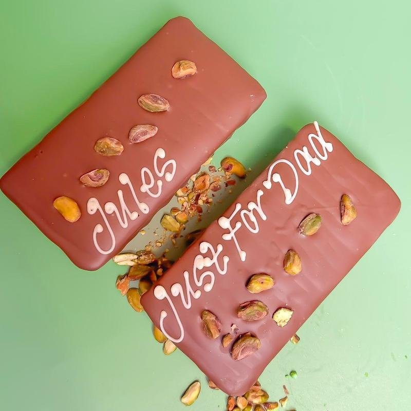 Our bestseller and a true customer favourite. The Pistachio & Kunafah Chocolate Bar is inspired by the famous Dubai-style chocolate, combining rich, nutty pistachio flavours with layers of crispy kunafah, all wrapped in smooth Belgian milk chocolate.